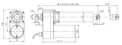 1000 ≤ travel<1500, minimum installation distance=travel+300